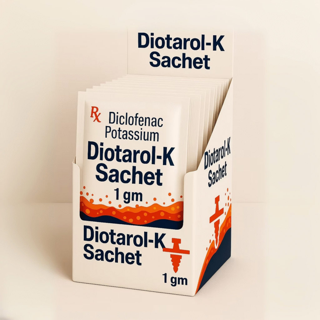 Diotarol-K is a trusted NSAID that provides fast and effective relief from joint and muscle pain, helping reduce swelling, stiffness, and discomfort caused by arthritis, back pain, sprains, and muscle spasms. Taken with food or milk as prescribed by the doctor, it supports quicker recovery and improved mobility. With its targeted action, Diotarol-K ensures better pain management, allowing individuals to regain comfort and enjoy a better quality of life.