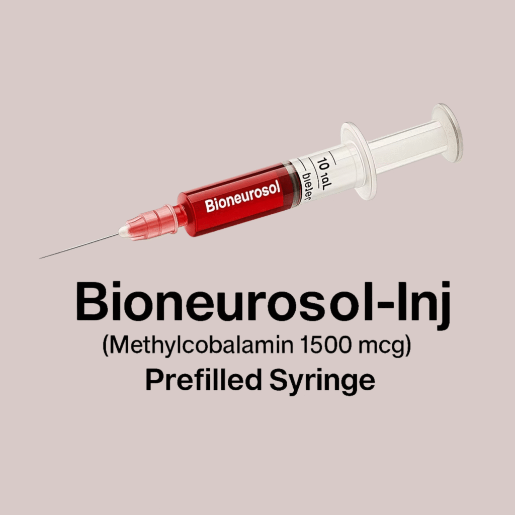 Bioneurosol delivers high-strength methylcobalamin (active Vitamin B12) in a convenient ready-to-use injectable form. Specially formulated for rapid action, it’s your go-to solution for treating B12 deficiency, anemia, and nerve-related conditions like diabetic and peripheral neuropathy.