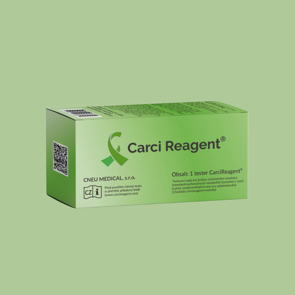 CarciReagent® is an in vitro diagnostic self-test designed to detect monohydroxyphenolic metabolites (tyrosine) in urine using a chemical chromogenic method. Elevated urinary tyrosine levels can serve as an early warning sign of possible malignant tumors and other health issues. By providing quick, semi-quantitative results through a visible color change, it enables individuals to monitor their health and seek medical advice promptly.
